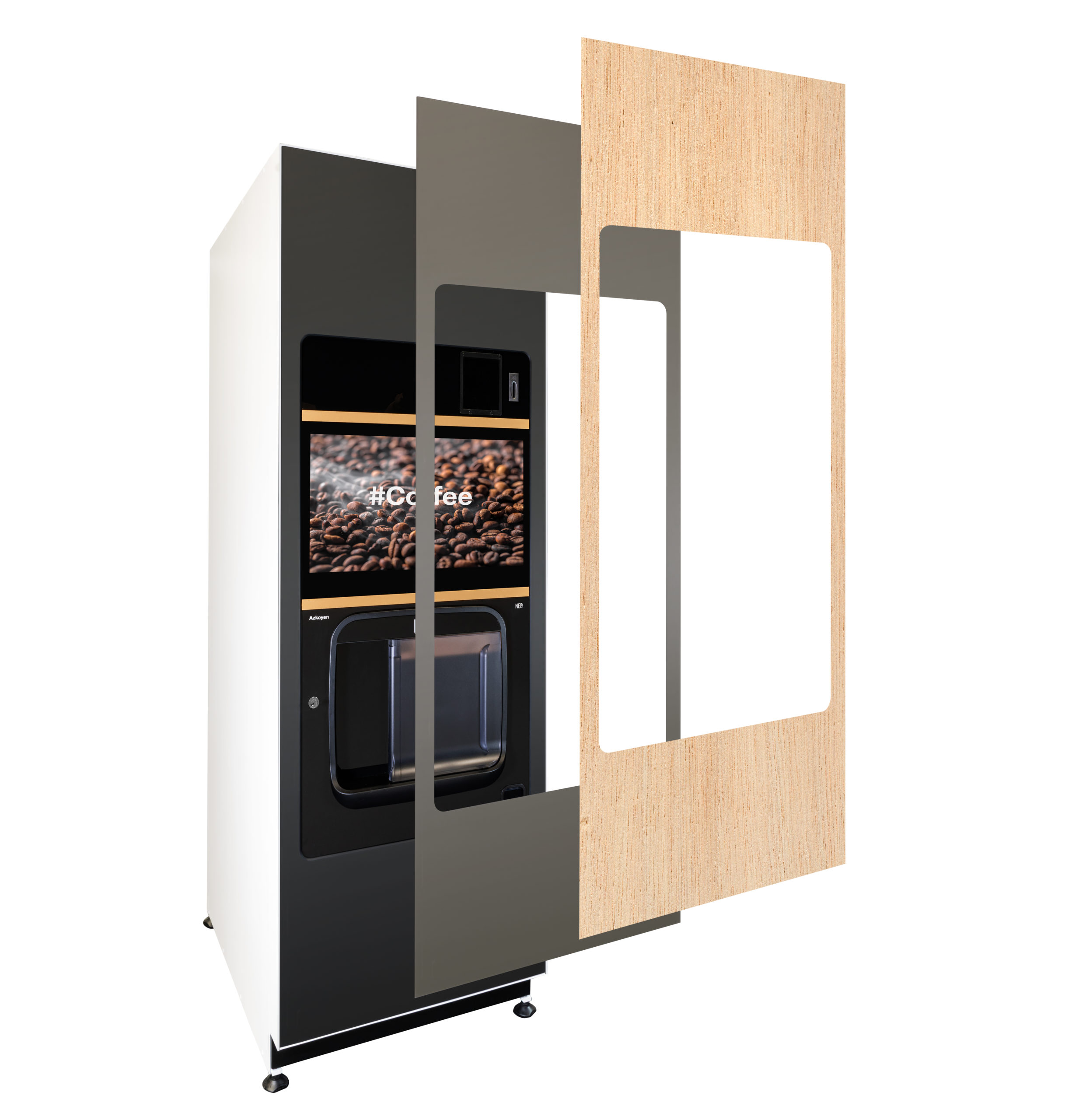 The versatility of its design allows you to adapt to your customer, as well as to refurbish the machine by just replacing the front part. It only takes 5 minutes to change the front of your machine – low cost and simple to update the design.
