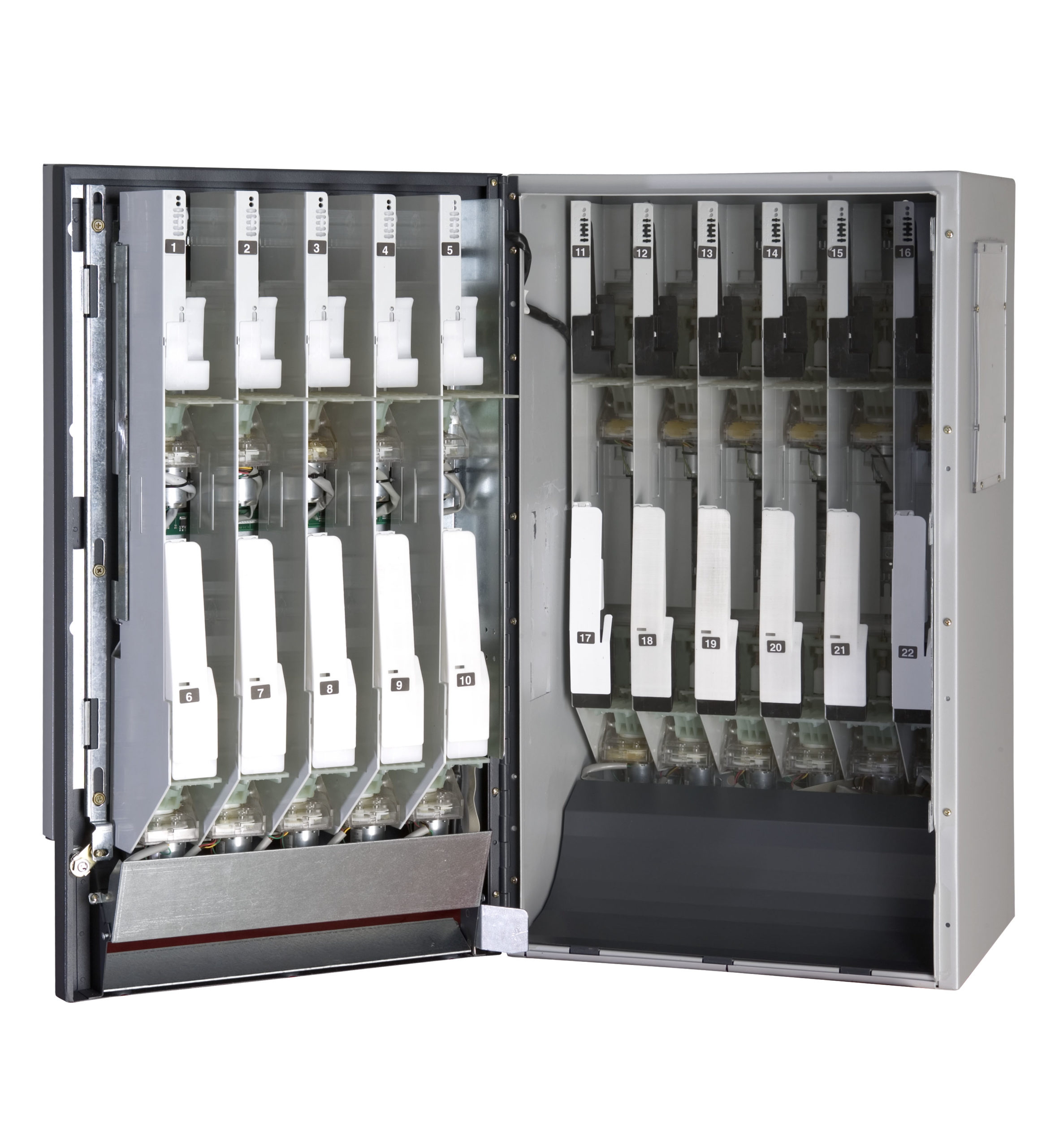 Its modular design means up to two vending modules can be combined with a control module, increasing capacity at lower cost.